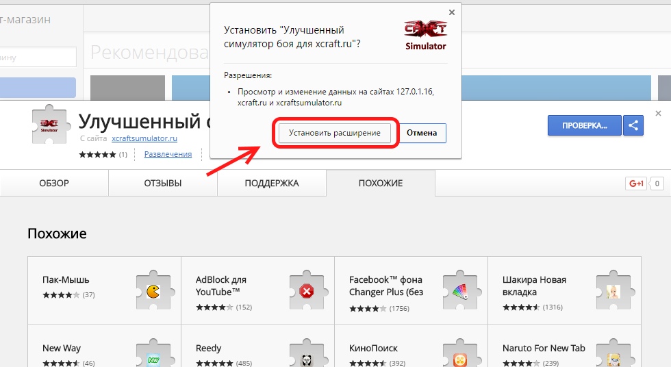 - В менеджере расширений установите расширение "Улучшенный симулятор для xcraft.ru"