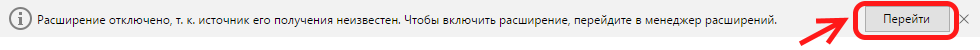 - Во всплывшей плашке нажмите кнопку перехода в менеджер расширений.